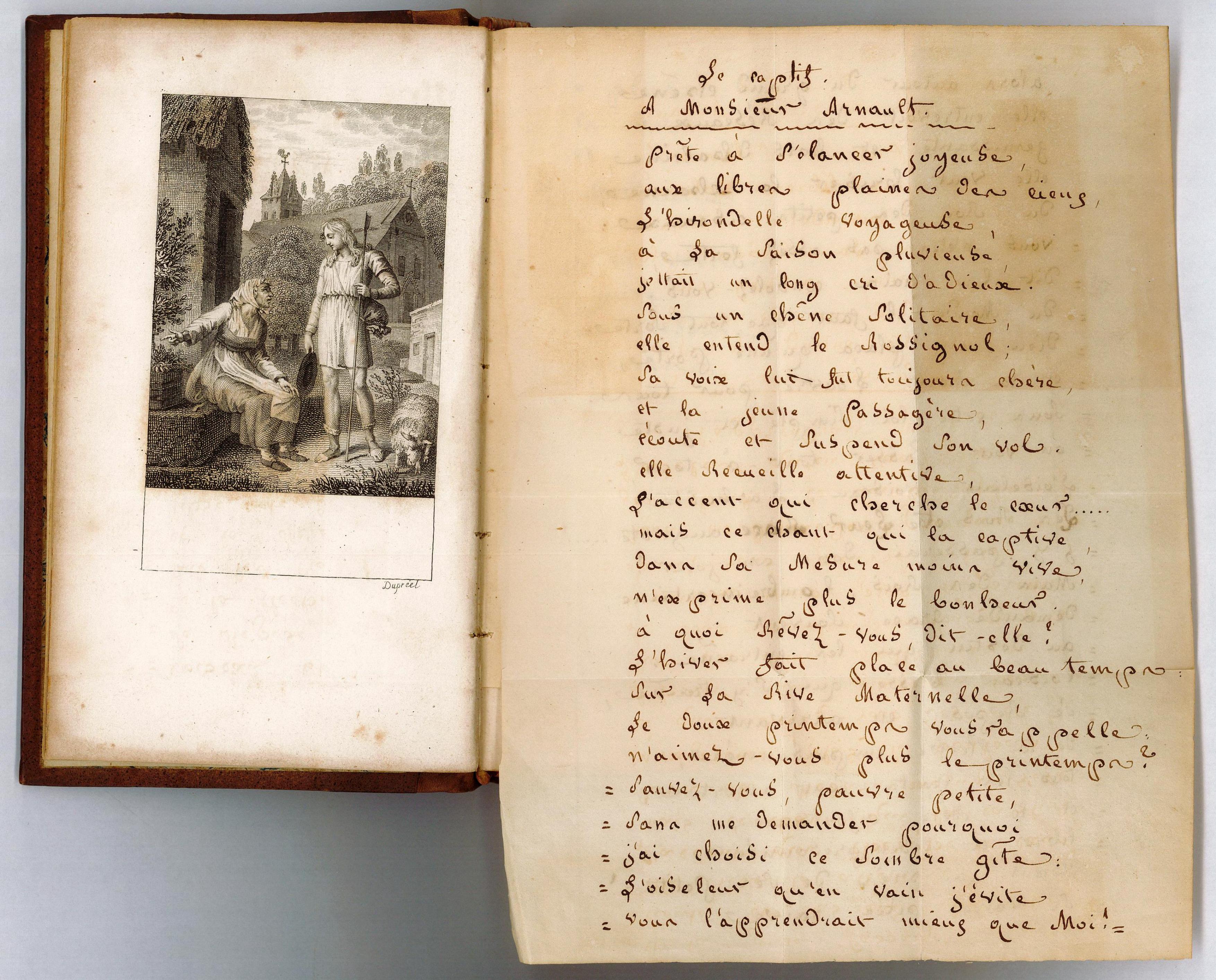 Exemplaire du recueil Élégies, Marie et romances avec corrections, et poème autographe signé de trois pages intitulé « Le Captif ». Collection particulière (vente Brissonneau du 28/11/2025)